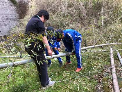水路を作るために使う竹をのこぎりで切ることもしました。田んぼづくりを自分たちの手で行う経験は、なかなかできることではありません。こういった体験の一つ一つが子どもたちの生きる力につながると思います。