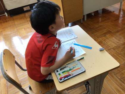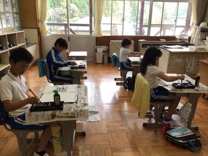 5・6年生は、毛筆の授業で、「道」(5年生)、「湖」(6年生)の練習に取り組みました。ひまわり学級では、家庭科の授業で自分の生活時間について表にして振り返り、見直す学習に取り組みました。