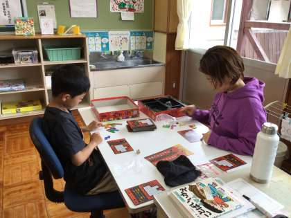 3時間目:4年生は書写で「林」の字を練習しました。止めやはらい等、筆使いを意識して何度も練習していました。あさがお学級は生活単元学習で、ウボンゴに取り組みました。ウボンゴはパズルゲームで直観力や論理力を鍛えるゲームです。児童の頭は柔らかく、素早くピースを組み重ねて、決まった形に当てはめていました。