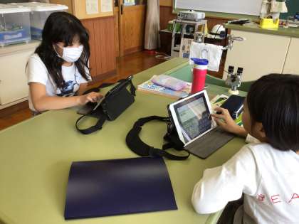 理科の授業で「天気の変化する様子」について学習しました。学習用タブレットにあるスカイメニューの機能を活用し、先日撮影した写真を取り込みながらまとめました。