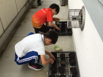5時間目にとうもろこしの種を植えました。最初に種から出てくる芽はどんな感じか?考えていると、思わずいろいろな想像をして笑い合っていました。1つの鉢に2粒ずつ種を植えました。連休明けにどのようになっているか楽しみです。