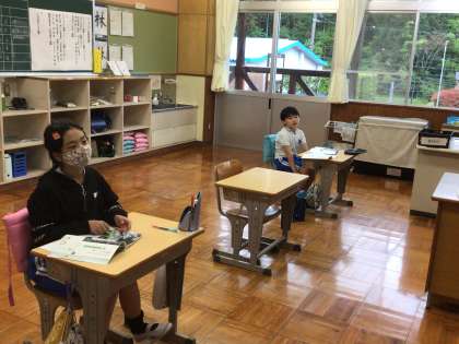 国語科の授業で「自然のかくし絵」について取り組みました。1枚の絵から2つのものが見えるのですが、1つは見つかってももう1つを見つけることがなかなかできません。見方によって見えてくるものが違う実感ができます。学習目標が「驚いたことや不思議なことをまとめよう」ですので、このかくし絵をもとにまとめる学習を進めていきます。