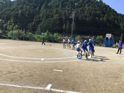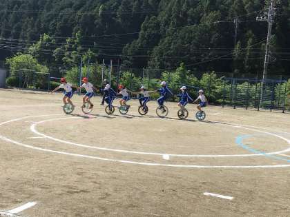 さわやかタイム(一輪車練習) 公開日 2025/05/13 更新日 2025/05/13 各学年から 今日のさわやかタイムは一輪車練習です。8人全員が集中していないと、長く手をつないで走ることが難しくなります。