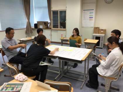 今日は下校後に、授業についての勉強会を行いました。今日参観した授業をもとに、話し合いをしました。