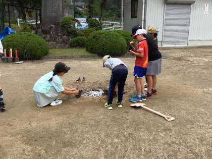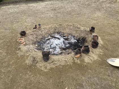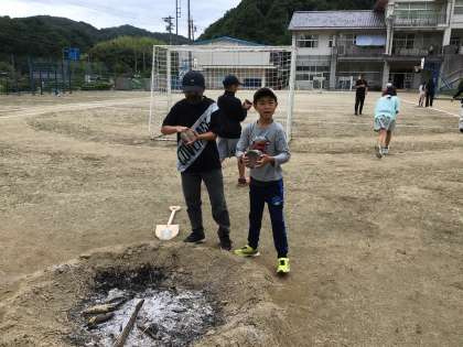5/26(月)縄文土器、しっかり焼けました! 公開日 2025/05/26 更新日 2025/05/26 各学年から 半日かけて縄文土器が焼けました。最後は、土器を冷まし、入っている灰を取り除きました。