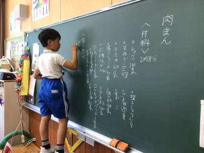 ひまわり学級では、自立の時間に肉まん作りの計画を立てていました。調理方法について学習用タブレットで調べたことを書き出していました。キャベツがメインの肉まんにしたいと思っています。調理過程について、どうして加熱するのか等、調理過程の中の理由を考えながら手順を確認していました。