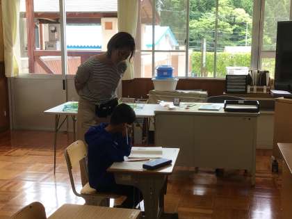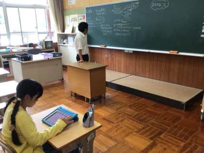 4年生は道徳「あの子の絵の具」について、取り組みました。今日は一人なので、学習用タブレットに自分の考えを書き込みながら先生と対話をして考えを深めました。あさがお学級は国語で「サツマイモの育て方」について、文章を担任の先生と読み取りながら学習を進めました。