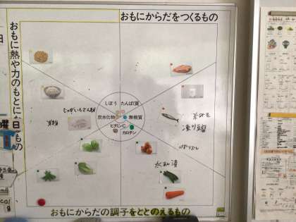 今日の給食は、高野豆腐のうま煮、たくあんあえ、サバの銀紙焼き、ご飯、牛乳です。高野豆腐やサバ等、タンパク質が豊富です。今日の献立は、1食あたり、30グラムのタンパク質を摂取することができます。