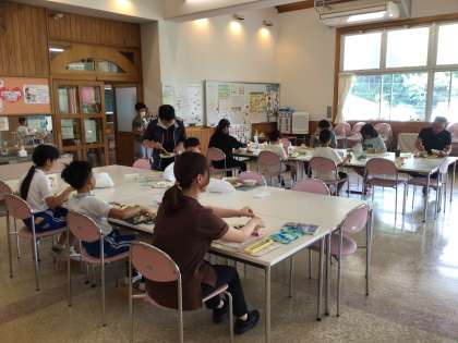 かみかみ献立は、「きのこの白みそ汁、厚切りきゅうりのこんぶあえ、イカカツ」です。今日はかみごたえのあるものばかりでした。3時間目に調理実習で作ったカレーライスを食べた後でしたが、カレーの分量はみんなで分けて少なくしてあったため、給食はいつも通り食べていました。