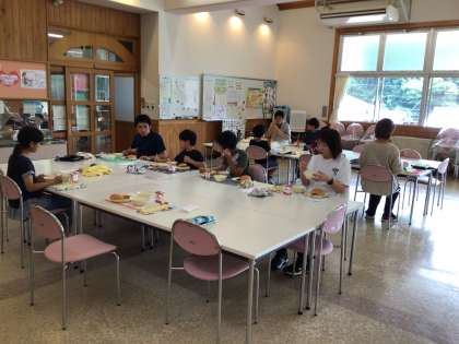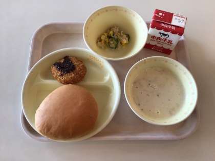 今日の給食♪ 公開日 2025/06/16 更新日 2025/06/16 お知らせ 今日の給食は、サンドイッチバンズ、えびカツ、コーンサラダ、ポタージュスープ、牛乳です。今日は、サンドイッチバンズにえびカツを挟んで「えびカツバーガー」にして食べました。