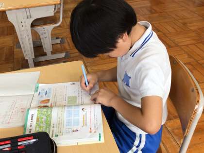 6/17(火)授業の様子(4年生、あさがお学級) 公開日 2025/06/17 更新日 2025/06/17 各学年から 4年生は、算数「交わってできる角の形を調べよう」について取り組んでいました。実際に三角定規を使って確認していました。あさがお学級も算数で計算の仕方について、担任の先生と対話をしながら学習していました。