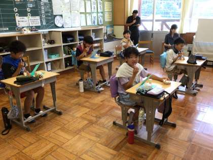 6/18(水)授業の様子(高学年) 公開日 2025/06/18 更新日 2025/06/18 各学年から 今日は、体育(保健)の授業で「おく歯みがきの達人になろう!」に取り組みました。養護教諭の研究授業でしたので、先生みんなで授業を参観しました。今朝の歯磨きの状態を染め出しして、みがき方を確認し、自分がきれいにしたい部分のみがき方について、グループで見合い、これからどのように磨いていくのがよいかについて学び合います。「やさしく」「ていねいに」がポイントとして出てきました。