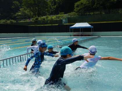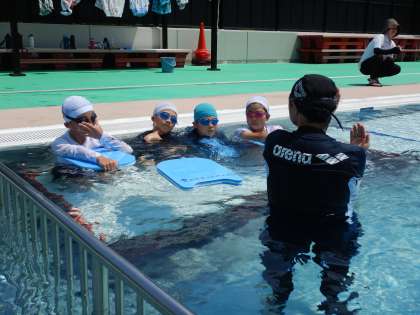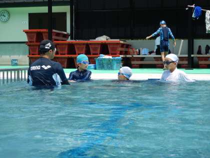 フオームを確認しながら練習をしました。今日の練習で、泳ぎがかなり上手になった児童が多くいました。