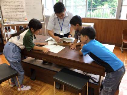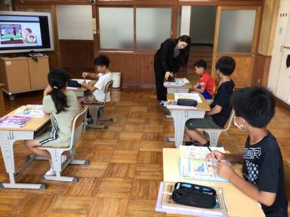 5・6年生は外国語で「週末をどのように過ごしたか聞き取ろう」について取り組んでいました。4年生は、音楽で「ダーリン」という合奏曲に取り組むため、楽譜をみんなで見ていました。