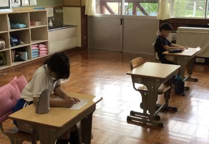 4年生は、先に朝の会を行なっています。歯磨きカードの記入をしたり気温・湿度の数字を読んだりしていました。4年生は、この後、豊田市交通安全学習センターへ行きました。
