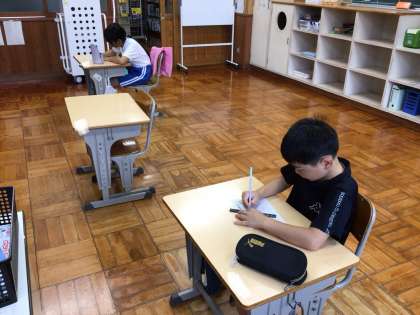 お昼前に、4年生が交通安全教室から帰ってきました。各学級で振り返りをしています。学んだこととして、「止まれのしるしは、自転車も止まる」「横断歩道では、降りて押して歩く」等を書いていました。