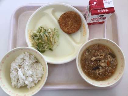 7/1(火)今日の給食♪ 公開日 2025/07/01 更新日 2025/07/01 各学年から 今日の給食は、とうがんのくず煮、たくあんあえ、えだまめコロッケ、ご飯、牛乳です。7月の給食の目標は、「暑さに負けない食事をしよう」です。ランチルームも空調が効き、涼しいため、快適に食事ができます。ありがたいです。月が変わったため、席が変わりました。