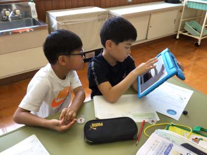 理科「夏の夜空にはどんな星が見えるのだろう」について学習しています。今週、夜空を観察する予定です。観察する時にこれを見ると、観察する時にどんな星かわかりやすいよというHPを学習用タブレットで検索して見ています。