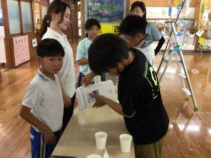 7/8(火)梅ジュースをみんなで! 公開日 2025/07/08 更新日 2025/07/08 学校の特色ある活動 6年生がつくってくれた梅ジュースをみんなで飲みました。甘酸っぱくてとてもおいしかったです。水泳学習で疲れた体をほぐすようなさわやかなジュースです。水で割ったものと炭酸で割ったものと両方飲んでいる子もいました。ごちそうさまでした。