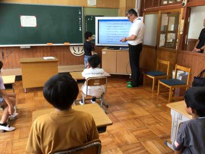 内容は、「こちらは足助警察署と御蔵小学校です。川遊びには危険があります。絶対に子どもだけでは遊ばないでください。必ず大人がつきそい、目をはなさないでください。おだやかな水面にだまされちゃダメ。川底に急な流れがかくれています。思わぬ深さやすべりやすい場所に注意しましょう。危険区域に入らないようにしましょう。」です。子どもたちが一人一文ずつ、声を吹きこみました。