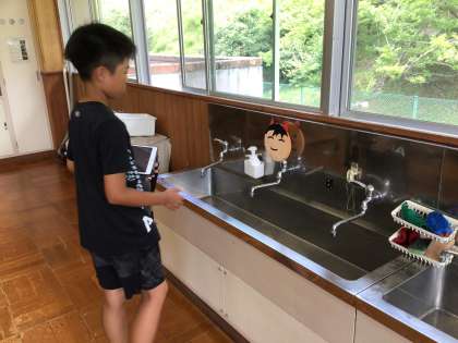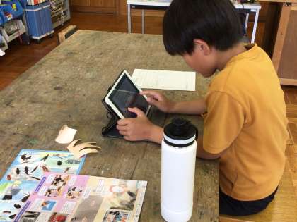 5・6年生は、図工「笑顔が生まれるしかけ」に取り組んでいます。蛇口に作った顔の絵をはって、水を使いすぎないよう意識できるようにしたいと考えています。みんあのためにと考えることで自分自身も笑顔になります。ひまわり学級では、算数「ばあいを順序よく整理して」について学習しています。問題について樹形図を書いて解いています。