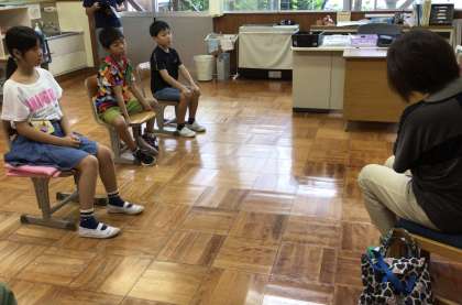 7/15(火)読み聞かせ 公開日 2025/07/15 更新日 2025/07/15 学校の特色ある活動 今日は読み聞かせの日です。4年生は、「あおりぼうしののんちゃん」「竹とんぼ」「トラのじゅうたんになりたかったトラ」、5年生は、「かわ」、6年生は、「もしゃもしゃちゃん」「かえるくんのあたらしいともだち」を読んでいただきました。 「かわ」の本は、絵巻仕立てになっていて、折りたたまれたページを広げると7メートルになります。源流から海までの川の旅が一望できます。