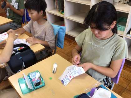 7/16(水)授業の様子(5・6年生)2 公開日 2025/07/16 更新日 2025/07/16 各学年から 5・6年生は、家庭科で手縫いの学習に取り組んでいます。5年生は、「半返し縫い」と「ボタンつけ」に挑戦しています。6年生は、刺し子を完成させようとしています。みんな丁寧に縫っています。ひまわり学級では、算数で「場合を順序よく整理して」で文章題に取り組み、3つの仲間に分けて図で整理ながら解いていきます。