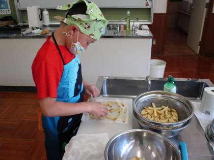 9/2(火)授業の様子(ひまわり あさがお) 公開日 2025/09/02 更新日 2025/09/02 各学年から 夏休み前に収穫をしたジャガイモを使って、フライドポテトとポテトチップスを作りました。塩味がほどよく、美味しくいただきました。