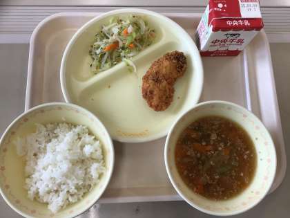 今日の給食は、とうがんのそぼろ煮、ささみ大葉梅肉フライ、青菜和え、ご飯、牛乳です。いただきますの前に食事のマナー(今日は食器の並べ方)について保健給食委員の児童からお話がありました。その中で、どうしてご飯は左側に置くのかについて話がありました。日本には左上位の考え方があり、お米は日本人にとって尊い食べ物だとされてきたことから左側に置くという説があることを知りました。