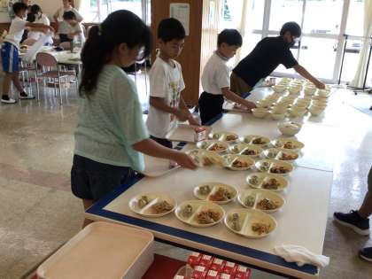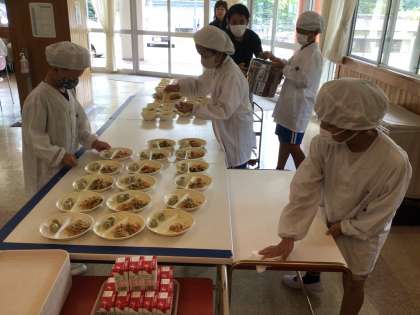 9/4(木)今日の給食♪ 公開日 2025/09/04 更新日 2025/09/04 各学年から 今日の給食は、豆腐の中華煮、野菜入りしゅうまい、ナムル、ご飯、牛乳です。今日は朝から川へ行ったのでおなかがペコペコです。