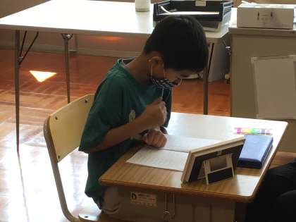 4年生は、社会「くらしを守る」で、火事から学校を守る工夫について考えています。消化器や防火扉など、火事が起きた時に火事が広がらないように学校の設備の中でどんな工夫があるか考えていました。あさがお学級は、九九の計算が載っている1ページ分の計算を45秒以内でやれることを目指して、九九の練習に取り組んでいました。