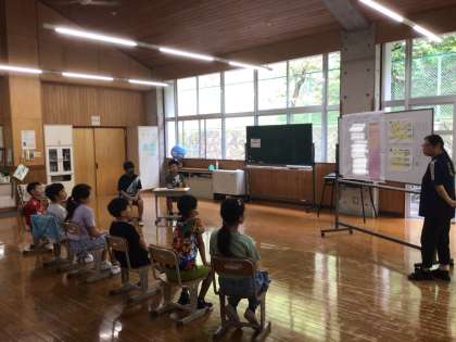 今日の題は、夏休みの思い出でした。スピーチをした児童は、旅行をした思い出について話しました。聴く側から出た質問について答え、このことについてメモの担当児童がメモをして、最後に、メモを参考にしながらもう一度スピーチをします。今日の2回目のスピーチは、メモを活かしてうまく話を膨らませてスピーチを終えることができました。