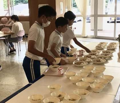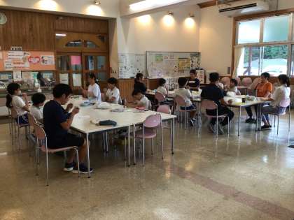今日の給食は、夏野菜のカレー、オムレツ、福神漬けサラダ、ご飯です。今日は5年生児童二人の誕生日です。みんなからお祝いの拍手をもらいました。おめでとう。今日は給食の写真をうっかり撮影し忘れてしまいました。すみません。夏野菜のカレーは、みんなお皿いっぱいにカレーとごはんが盛り付けられていましたが、しっかり食べました。