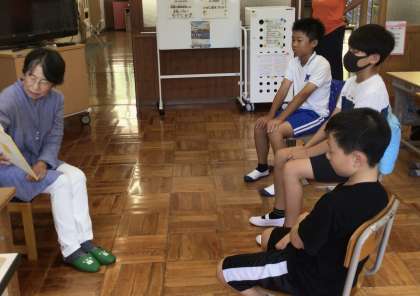 9/16(火)読み聞かせ 公開日 2025/09/16 更新日 2025/09/16 学校の特色ある活動 今日は、読み聞かせの日です。それぞれの学年ごとに本を読んでいただきました。 4年生は、「どすこい みいちゃん パンやさん」「ネコヅメのよる」、5年生は、「かさこじぞう」「はなび」、6年生は、「牛若丸」です。ありがとうございました。