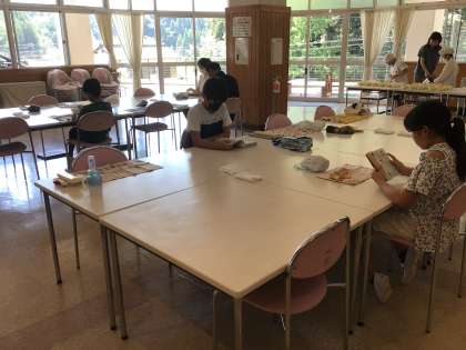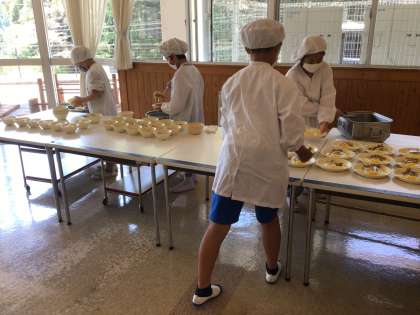 今日の給食は、豚丼の具、ごはん、糸切りこんぶの炒め煮、冷凍パイン、牛乳です。配膳を待っている間も静かに読書をしています。