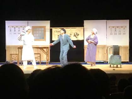 今日は、足助交流館飯盛座で芸術鑑賞を行いました。劇団うりんこさんによる「カドヤ食堂のなぞなぞ」の演劇を鑑賞しました。マイクロバスで宮町の駐車場まで乗せていただき、交流館まで足助の街を歩きながら向かいました。今日は平日のため、人も少なく静かな街並みの中、歩いて行きました。午前は、御蔵小学校と合わせて7校の児童が鑑賞しました。劇の中にところどころでなぞなぞが出てきて、低学年の子どもたちも夢中になって見ていました。