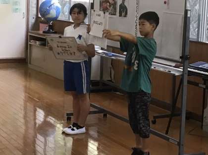 今朝は10月の全校朝会がありました。各委員会からめあての発表がありました。