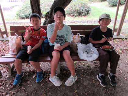 昼食はハンバーガーショップや弁当屋さんで購入し、名古屋城の公園で食べました。ボリュームのあるセットを全部食べた子も多く、おなかがいっぱいになったようです。雨も降ることなく秋の心地よい空気の中、おいしく食事ができてよかったです。
