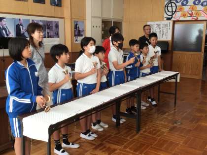 今朝のさわやかタイムは、全校でハンドベルの練習をしました。「夜に駆ける」の曲はテンポも早くメロディも細かいため合わせることが大変です。みんなで歌詞を口ずさみながらハンドベルを鳴らし、音色がそろうようにがんばっています。