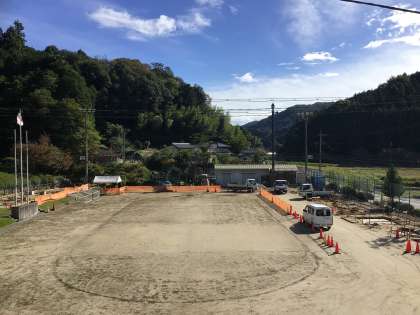 おはようございます。今朝は雲がかかっていましたがだんだんと晴れてきました。秋の心地よい風が吹いています。遊具の工事も土台作りがだいぶ進んでいます。