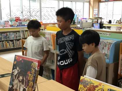 図書放送委員会は、図書コーナーを使いやすくするための工夫について考えています。