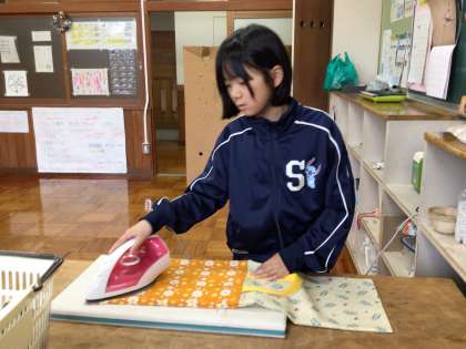 6時間目のクラブ活動。スポーツクラブはバトミントンをしました。ペアのチームを作り対戦しました。MCCクラブは手芸作品を作っています。今日は周りをミシンで縫って布地を裏返してアイロンがけをしました。