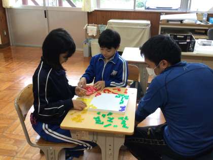4年生は、算数の授業で最後に少し時間があったため、面積の学習と関連して陣地取りゲームに取り組みました。市販のゲームですが空間認識力等、頭を使って楽しみながら取り組んでいました。