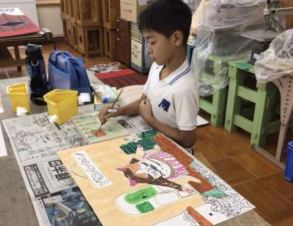 あさがお学級は図工で読書感想画に取り組んでいました。色作りを楽しみながら取り組んでいました。
