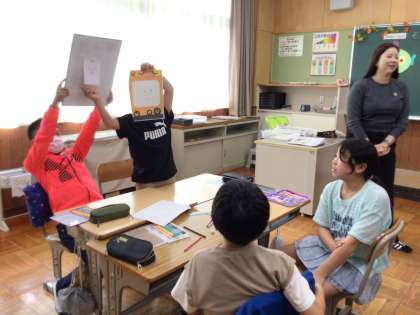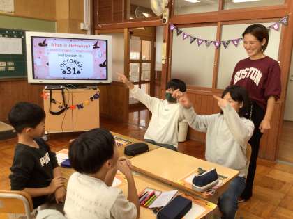 10/27(月)全校外国語 公開日 2025/10/27 更新日 2025/10/27 お知らせ 全校でハロウィンをテーマに外国語の授業をしました。エリカ先生にモンスターの出てくる英語の絵本を読んでもらいました。その後、英語のヒントをもとにモンスターを描くゲームをしました。ヒントを出す役の人は、英語をジェスチャーで伝えようと頑張っていました。