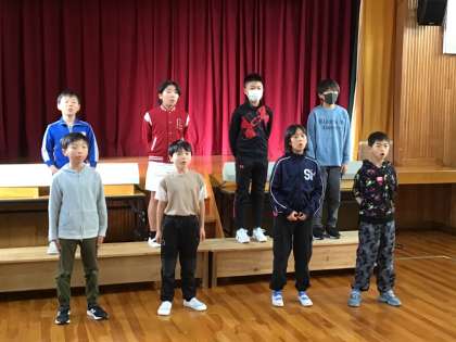 今日のさわやかタイムは、全校合唱練習です。全校合唱では「旅立ちの時」を歌います。人数は少ないですが発声方法をしっかりしてきれいな歌声が集会室に響くようにがんばっています。