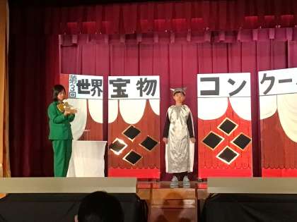 11/12(水)学芸会予行練習3 公開日 2025/11/12 更新日 2025/11/12 各学年から 4年生「本当の宝物は…」の劇です。下見会よりも場面に合わせた動きが出てきて、観ている方もさらにおもしろくなってきました。