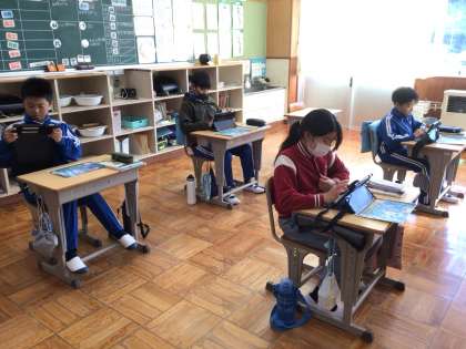 5・6年生は、昨日行った博物館学習の振り返りをしています。