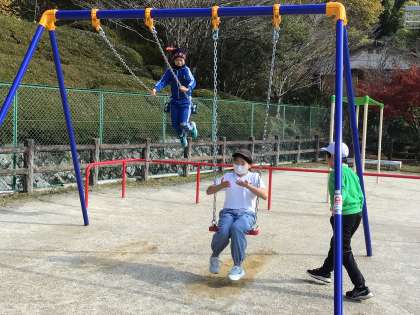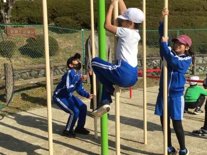 今日は朝に試走会があったため、わんぱくタイムは久しぶりに遊べる時間になりました。天気もよいので子どもたちは、新しく設置された遊具で遊びました。遊び方にも少しずつ慣れてきました。