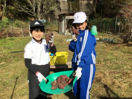 11/28(金)円山学習 公開日 2025/11/28 更新日 2025/11/28 お知らせ 4年生は野菜の栽培もしています。今日は楽しみにしていたサツマイモの収穫をしました。土を掘りサツマイモの頭を見つけると「あったー!」とイモを傷つけないように手でやさしく掘っていました。 56年生は、田んぼを起こして来年の栽培ができるようにしました。